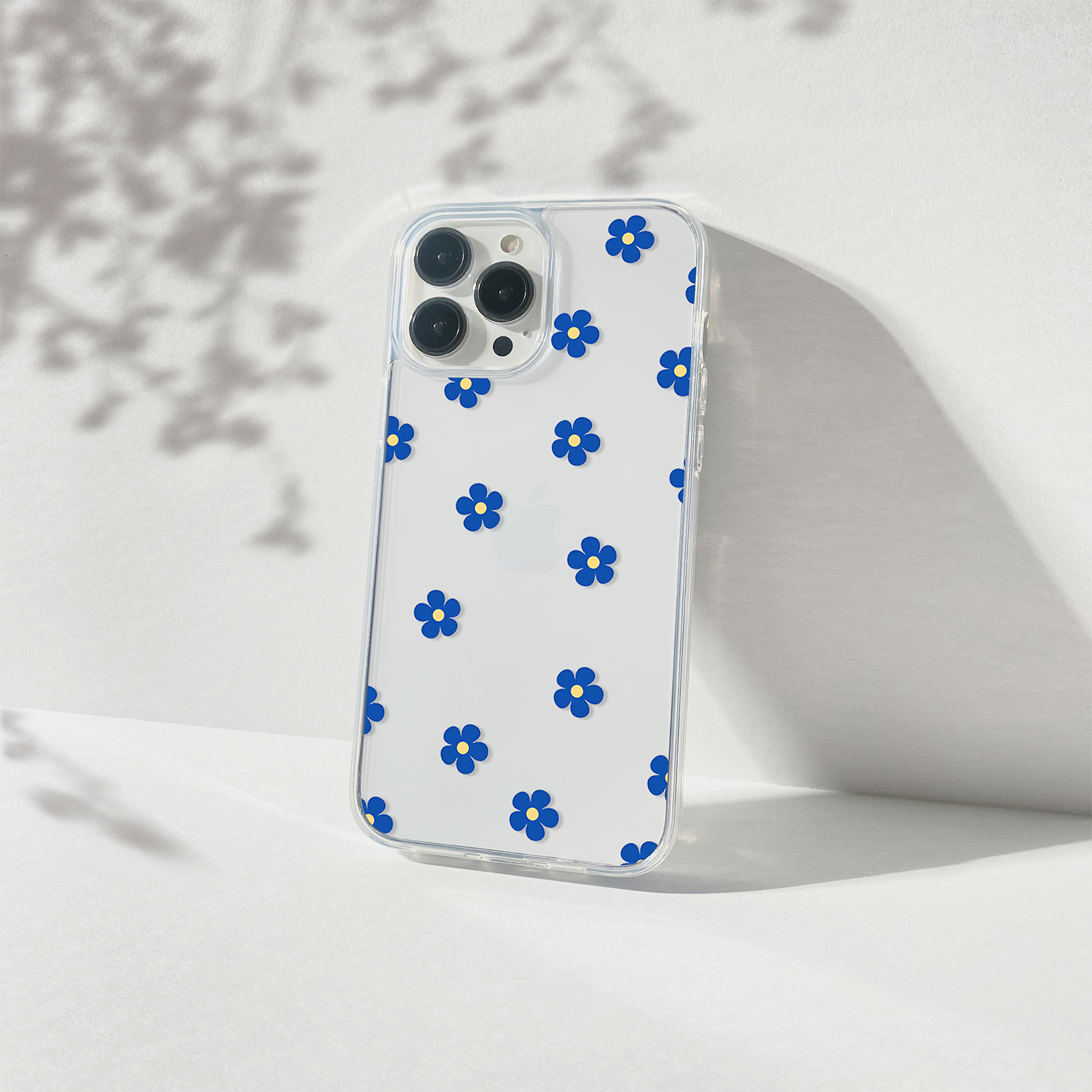 This phone case features a charming pattern of blue flowers with yellow centers, creating a playful and vibrant look. Perfect for someone who loves a fresh, feminine style that stands out. Its durable design ensures your phone stays protected while adding a touch of youthful elegance. Get yours now!