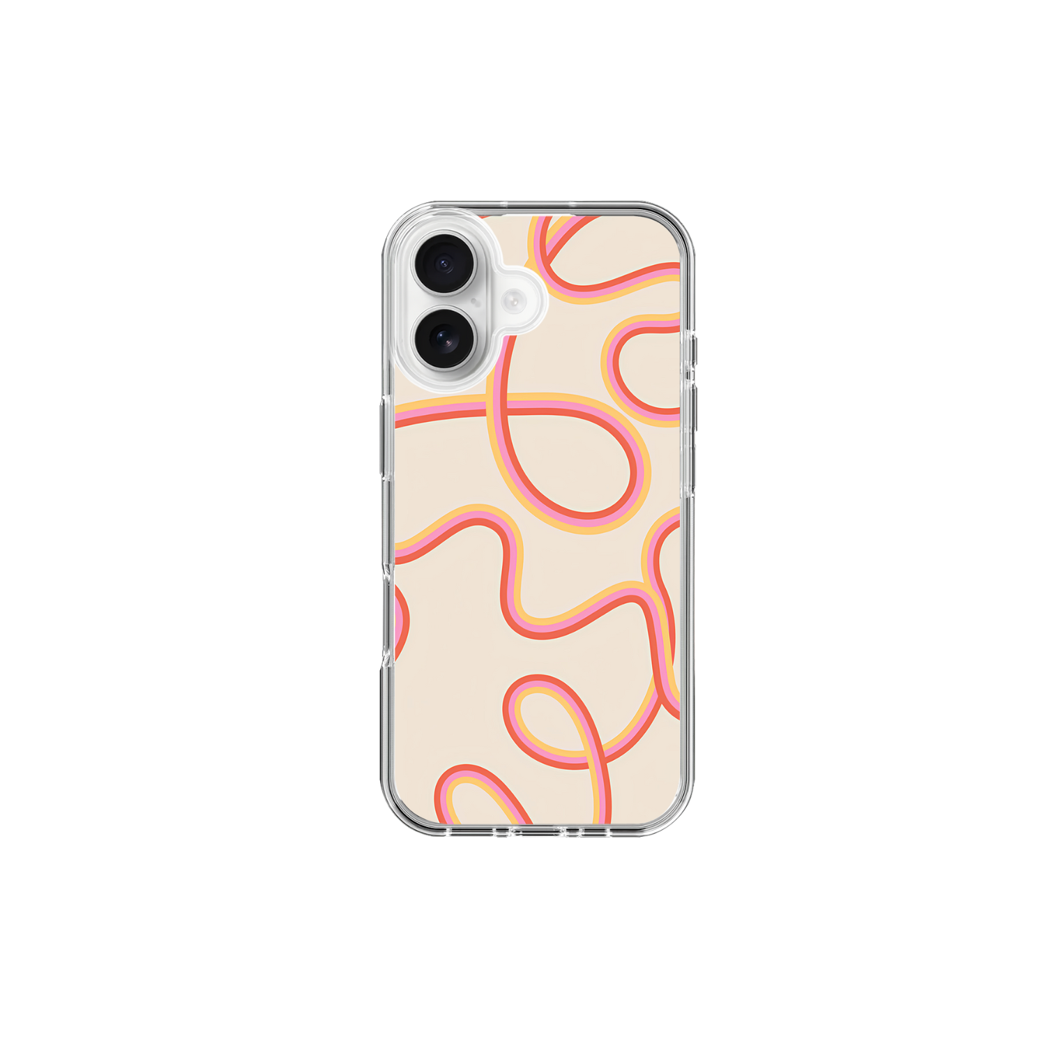 This playful design showcases flowing, curved stripes in vibrant shades of red, orange, yellow, and pink against a soft beige backdrop, evoking a sense of fun and retro energy with its smooth, looping patterns that add a pop of color to your everyday style. Ideal for someone who enjoys bright, whimsical accessories that bring a cheerful twist to their phone. Get yours now!