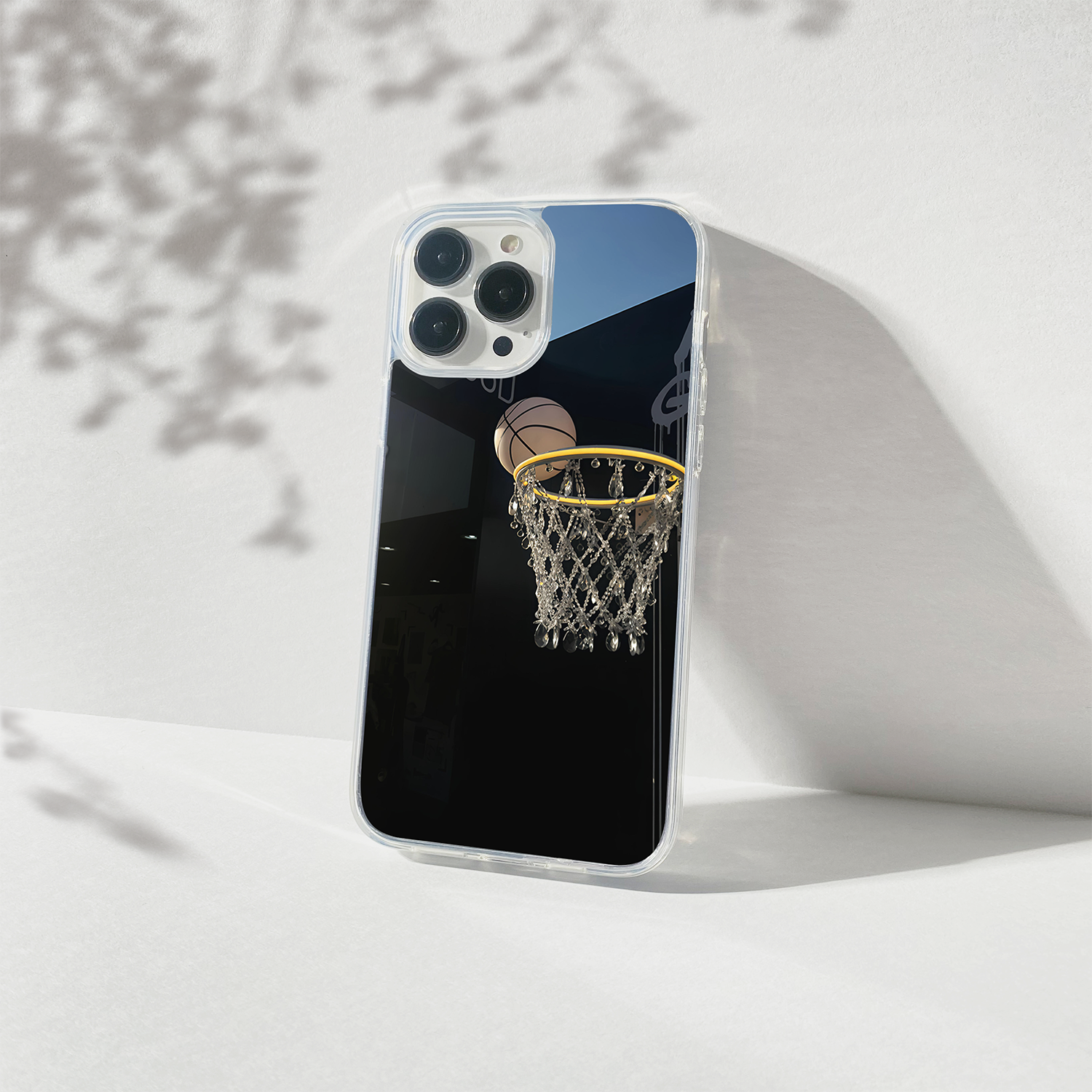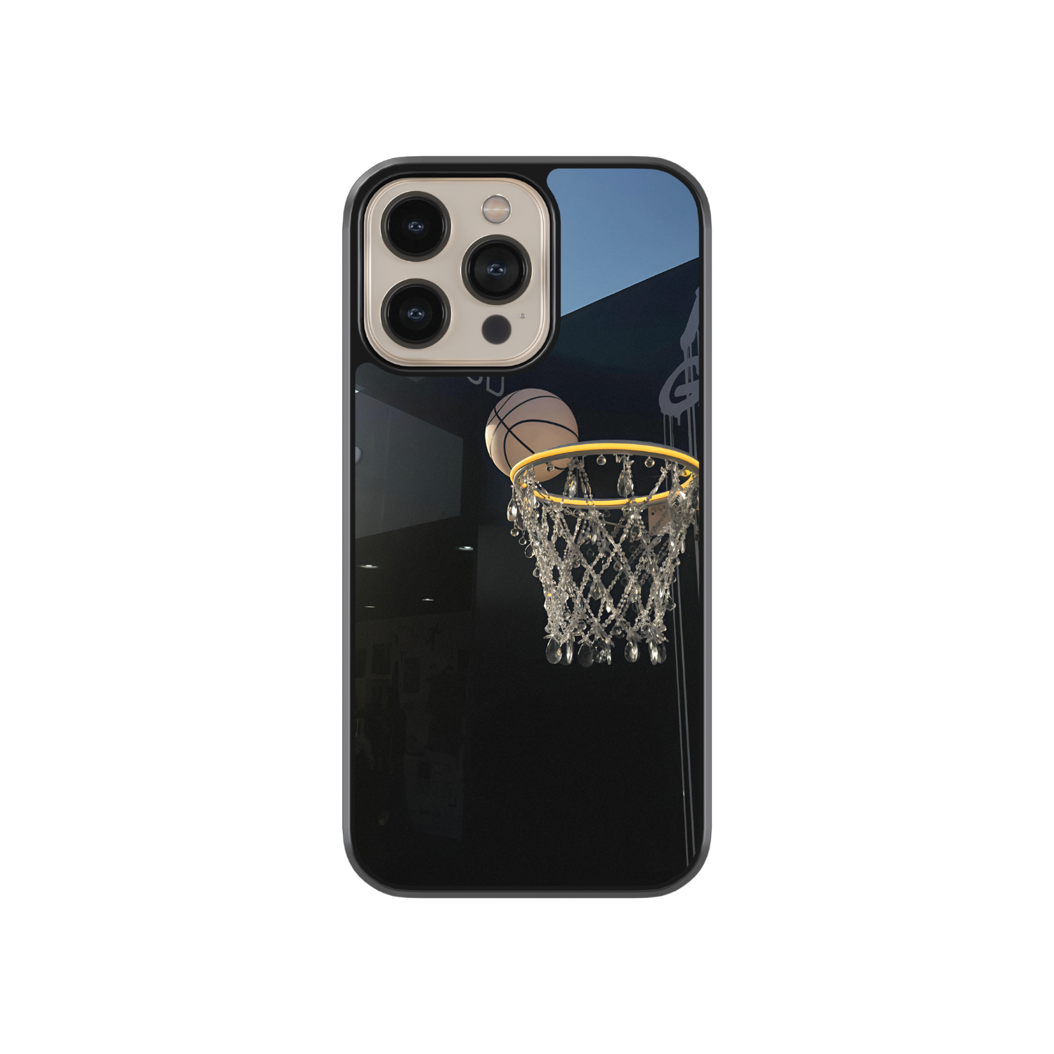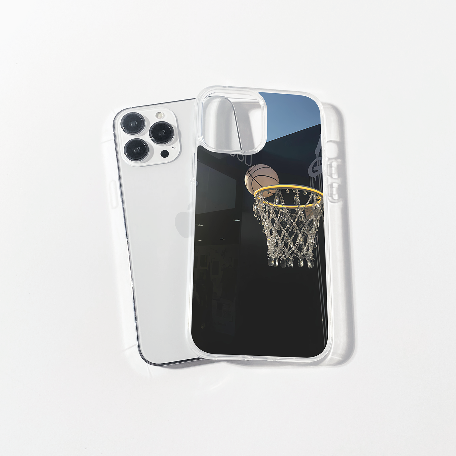 Elevate your phone with this bold case featuring a basketball mid-air against a sparkling crystal-encrusted hoop on a sleek black backdrop. The sporty yet glamorous design combines athletic flair with luxury, perfect for someone who loves unique, eye-catching contrasts. Get yours now!