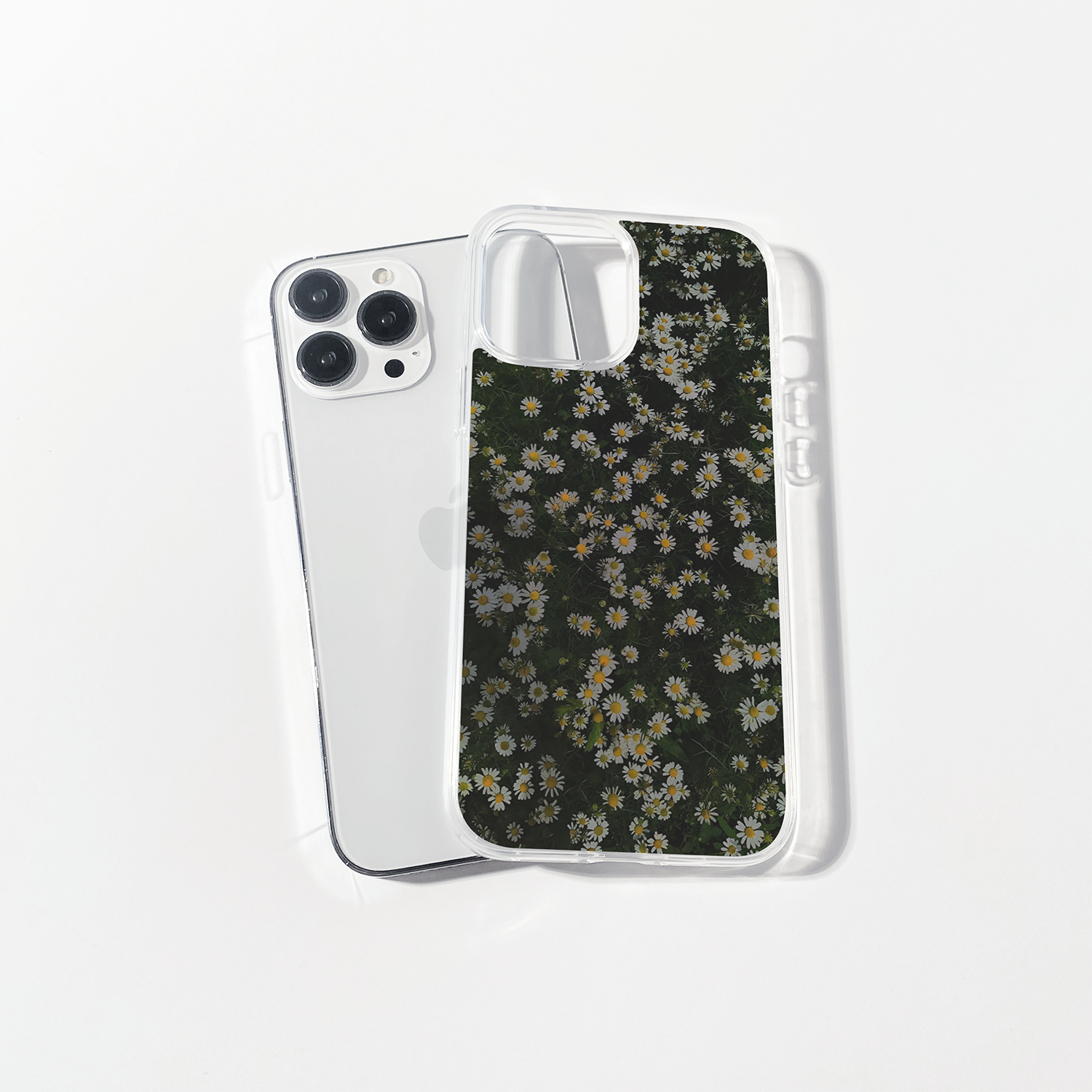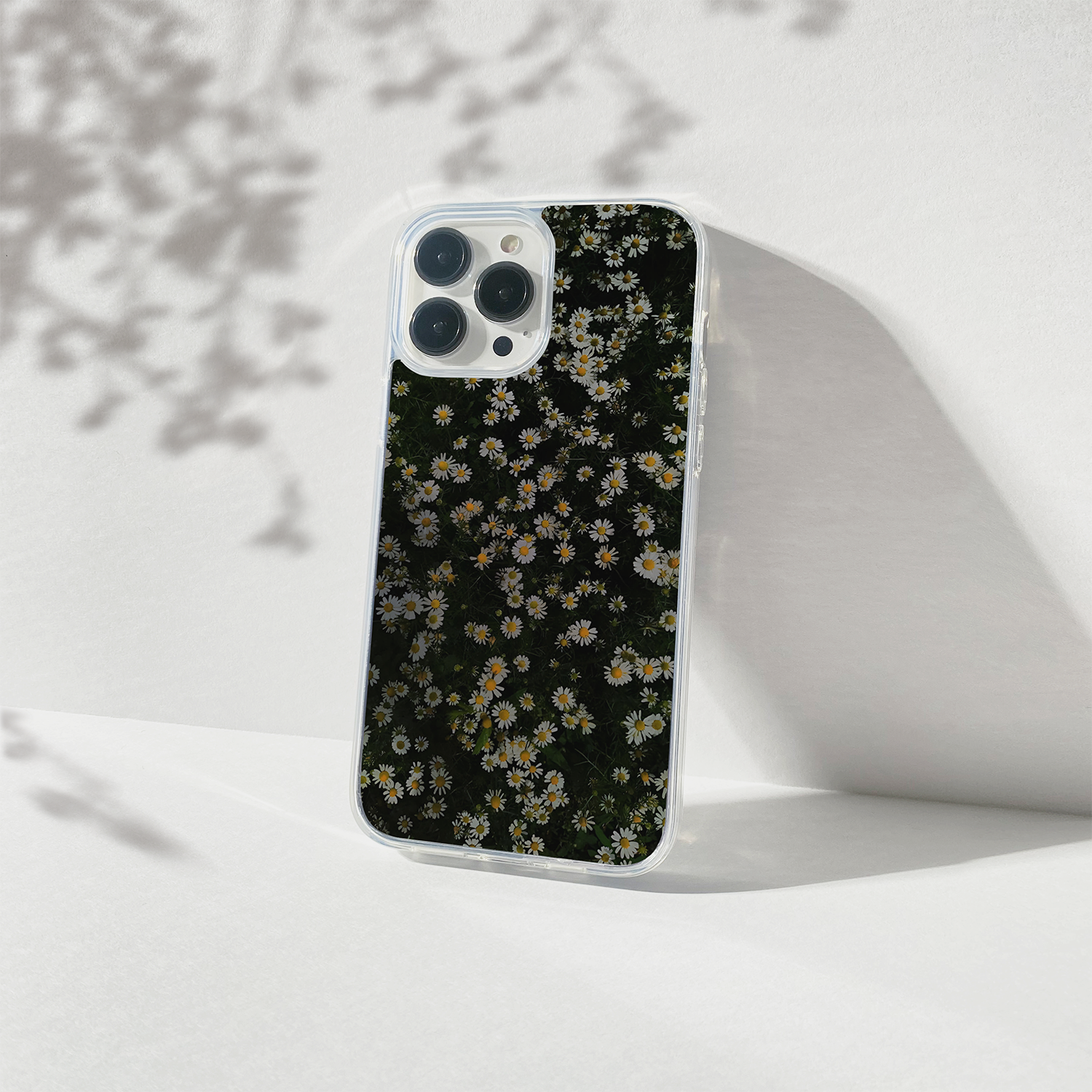This phone case showcases a delightful field of white daisies with yellow centers, set against a lush green backdrop, offering a fresh and natural look. Perfect for someone who enjoys a delicate yet vibrant style, this design adds a playful and serene touch to your device. Durable and trendy, it’s a perfect accessory. Get yours now!