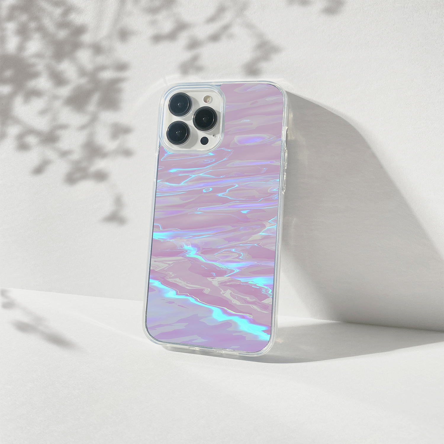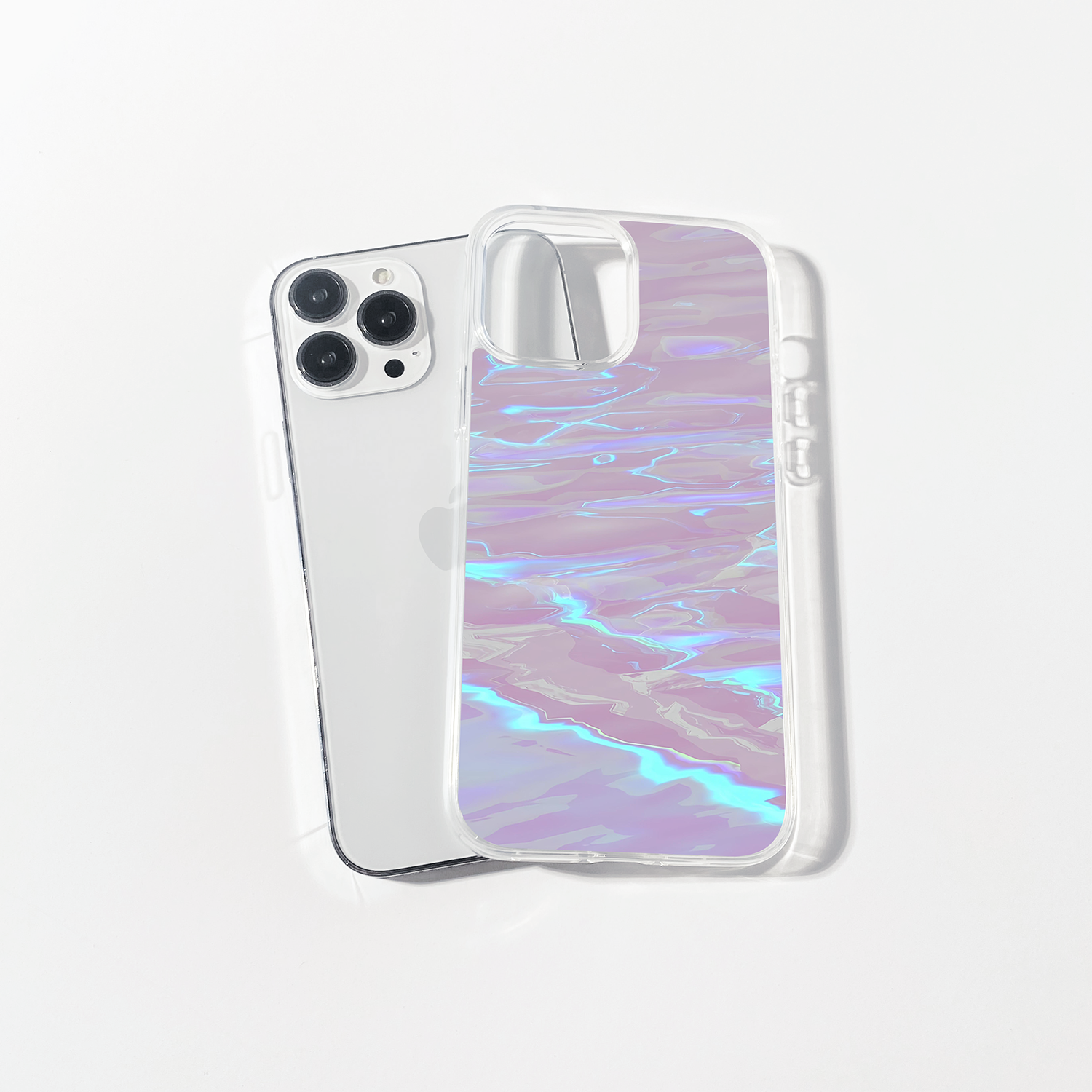 Make a statement with this mesmerizing phone case featuring swirling iridescent waves in soft pink and glowing turquoise hues. The fluid, holographic effect adds a futuristic touch, perfect for someone who loves trendy, eye-catching designs with a sleek finish. Get yours now!