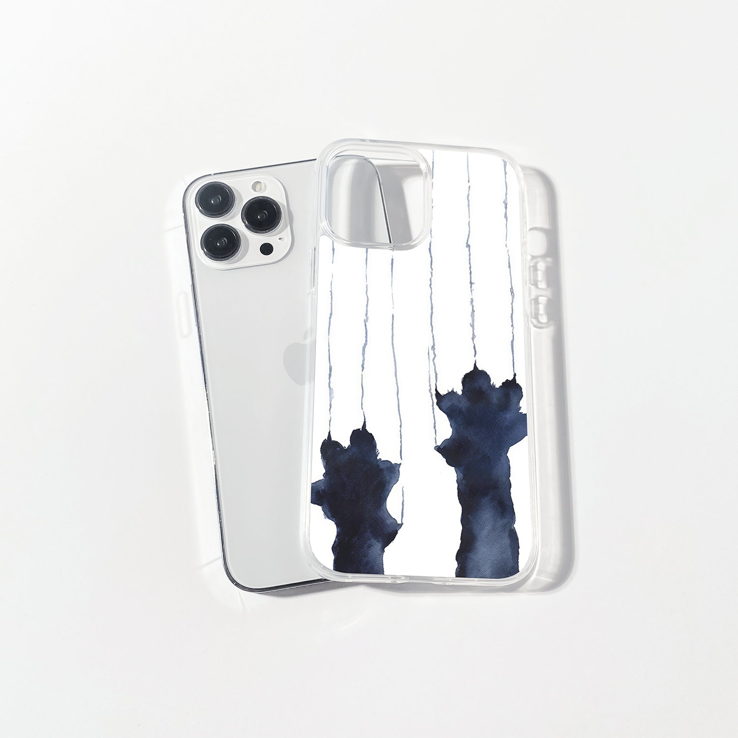This intriguing design captures two shadowy blue paws with elongated, dripping claws in a watercolor style, evoking a mysterious and artistic feel against a clean white canvas, perfect for adding an edge of intrigue to your device. Ideal for someone who likes bold, imaginative patterns that spark curiosity and stand out subtly. Get yours now!