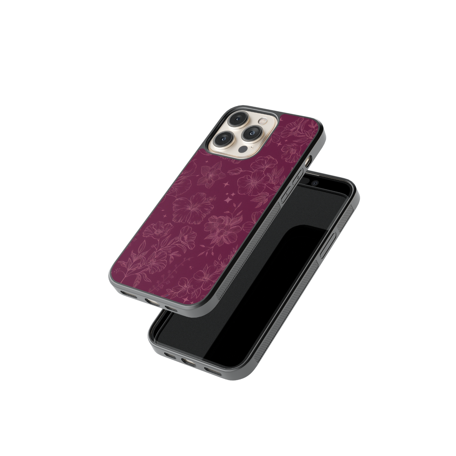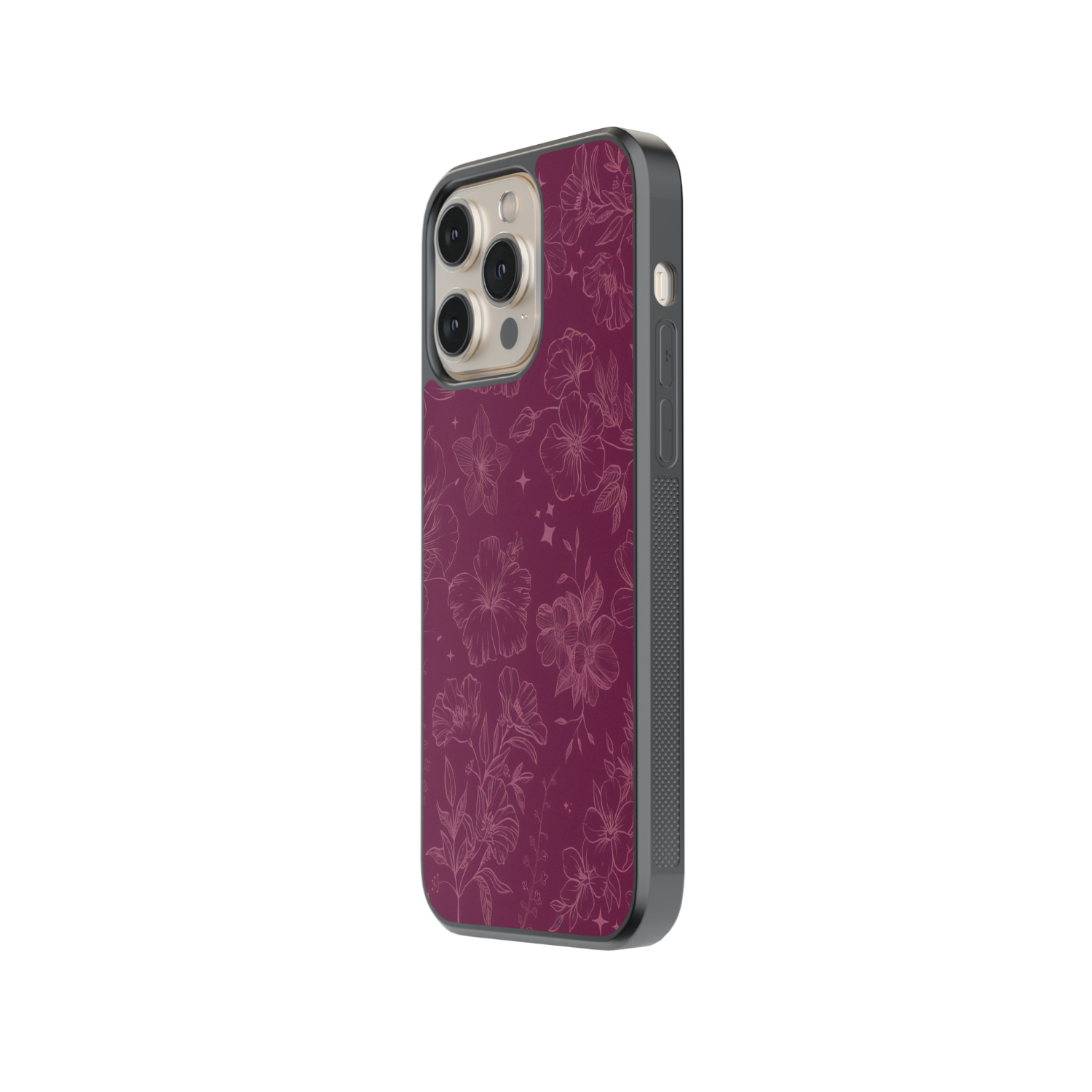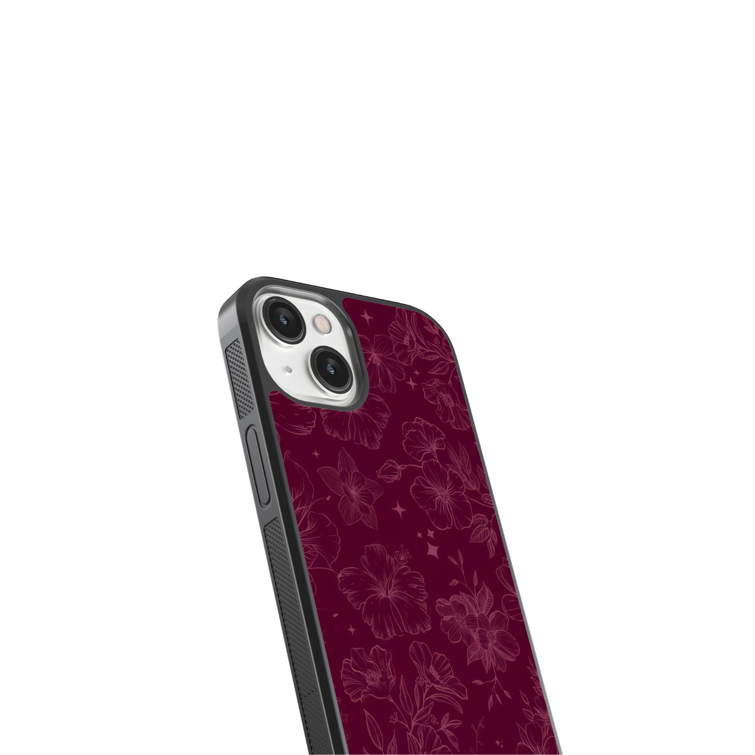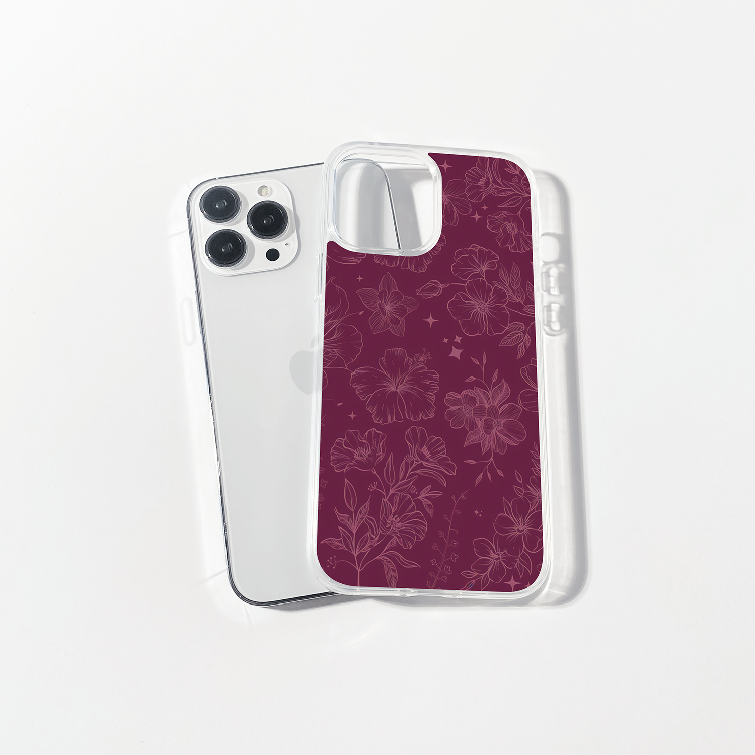 Elevate your phone with this enchanting design featuring delicate hibiscus flowers and twinkling stars on a deep maroon backdrop. The subtle line art in soft pink hues creates a dreamy, mystical vibe that's perfect for adding a touch of magic to your everyday style. Ideal someone who appreciates elegant, nature-inspired patterns that stand out with sophistication. Get yours now!