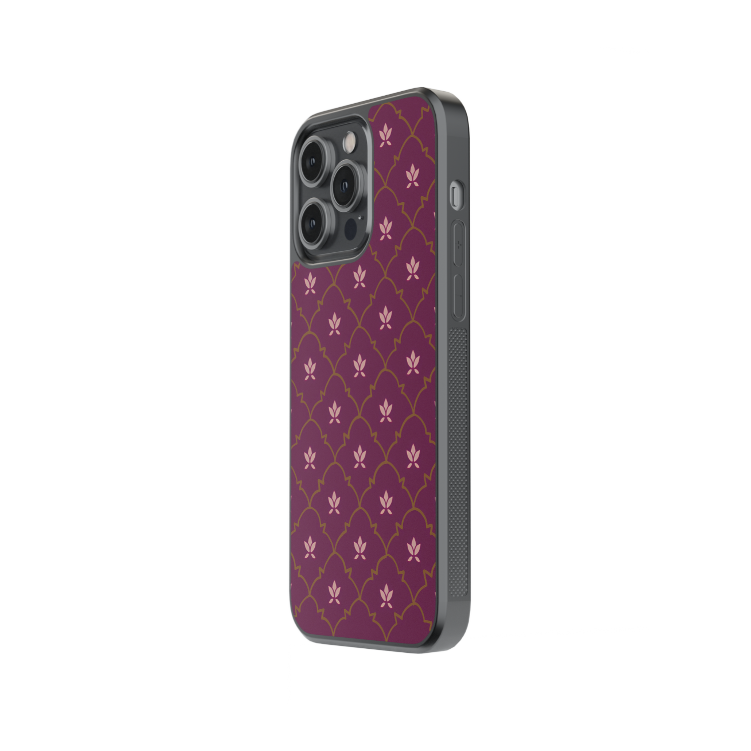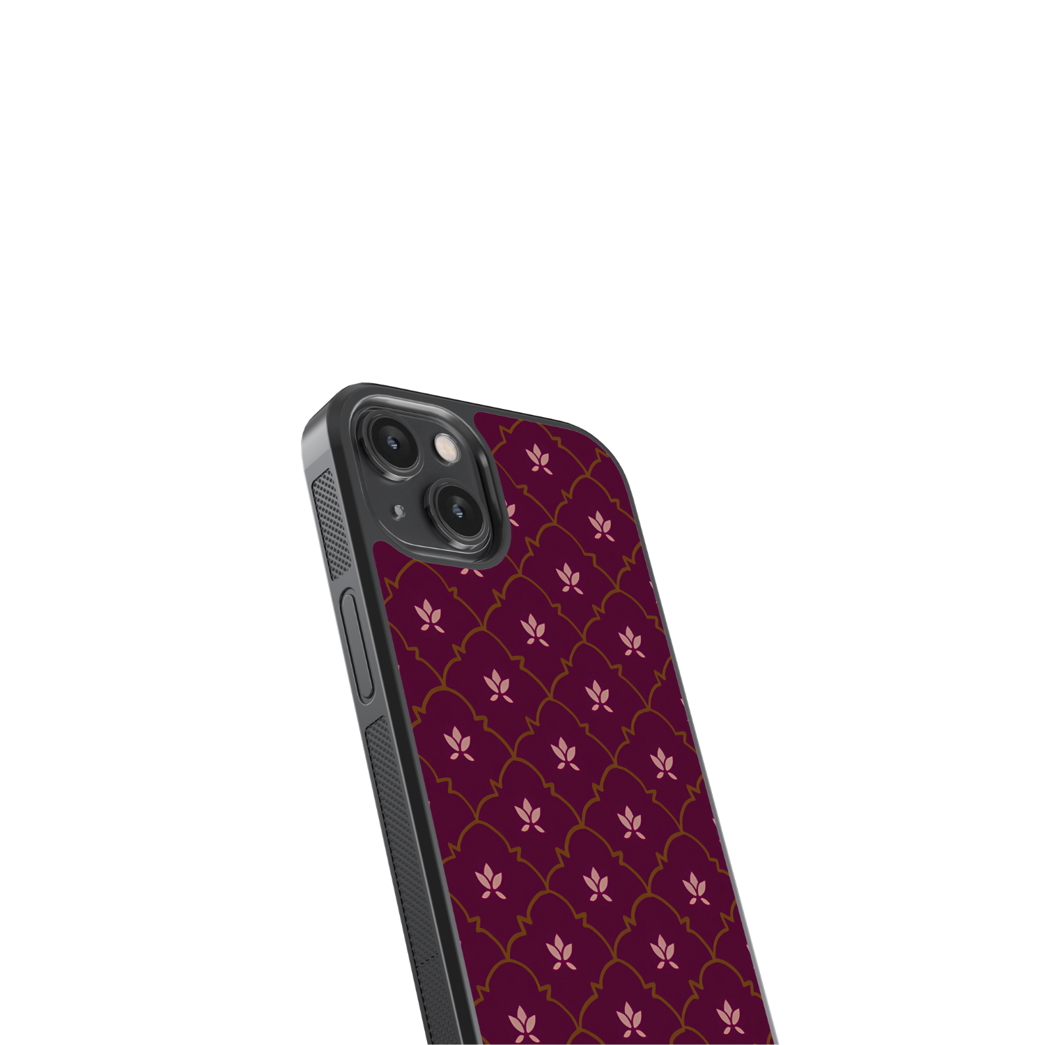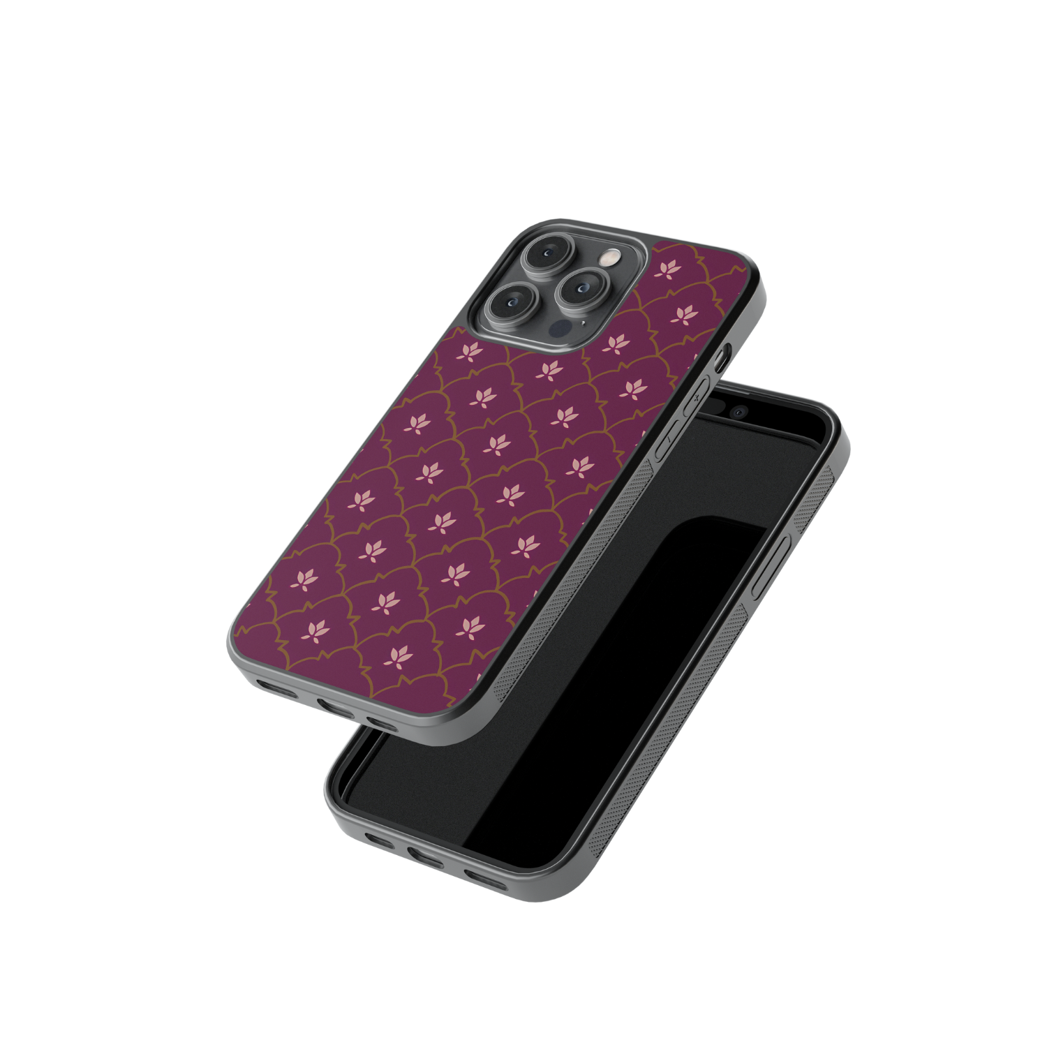 Indulge in regal elegance with this deep maroon phone case featuring intricate gold-outlined floral arches in a timeless lattice pattern—ideal for someone's sophisticated, feminine vibe. Slim and sturdy, it safeguards your phone while adding a touch of luxurious charm. Get yours now!