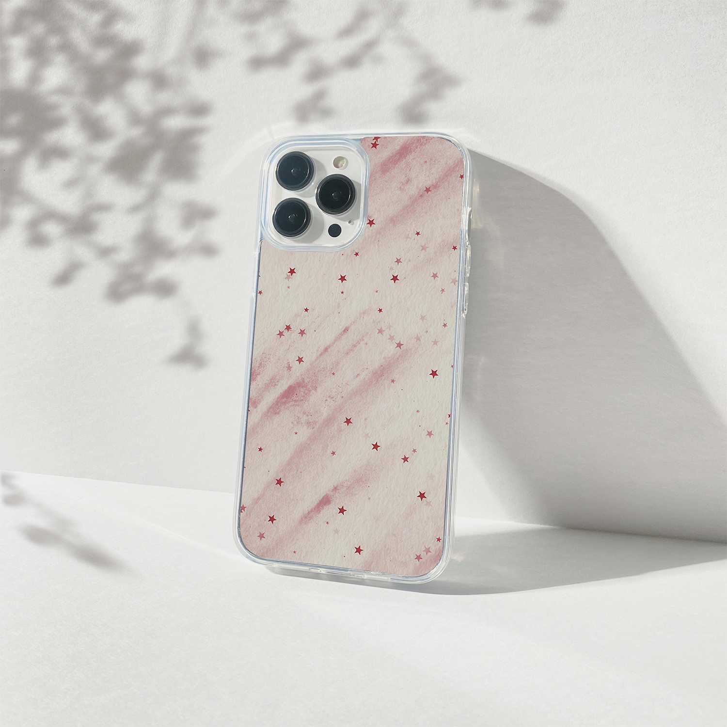 Light up your phone with this ethereal case featuring a delicate blend of soft pink swirls and scattered red stars on a creamy backdrop. The dreamy, artistic design brings a celestial vibe, perfect for someone who loves whimsical, starry patterns with a modern touch. Get yours now!