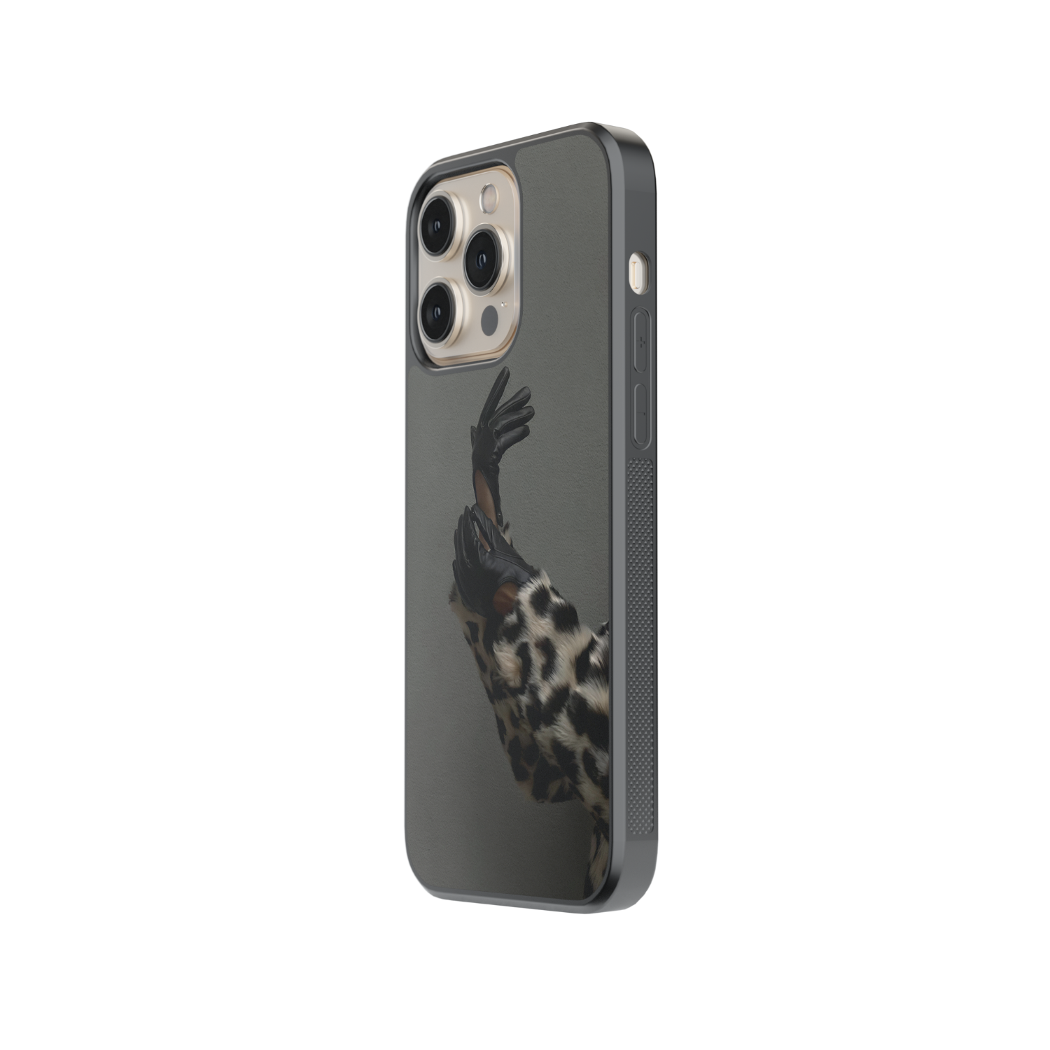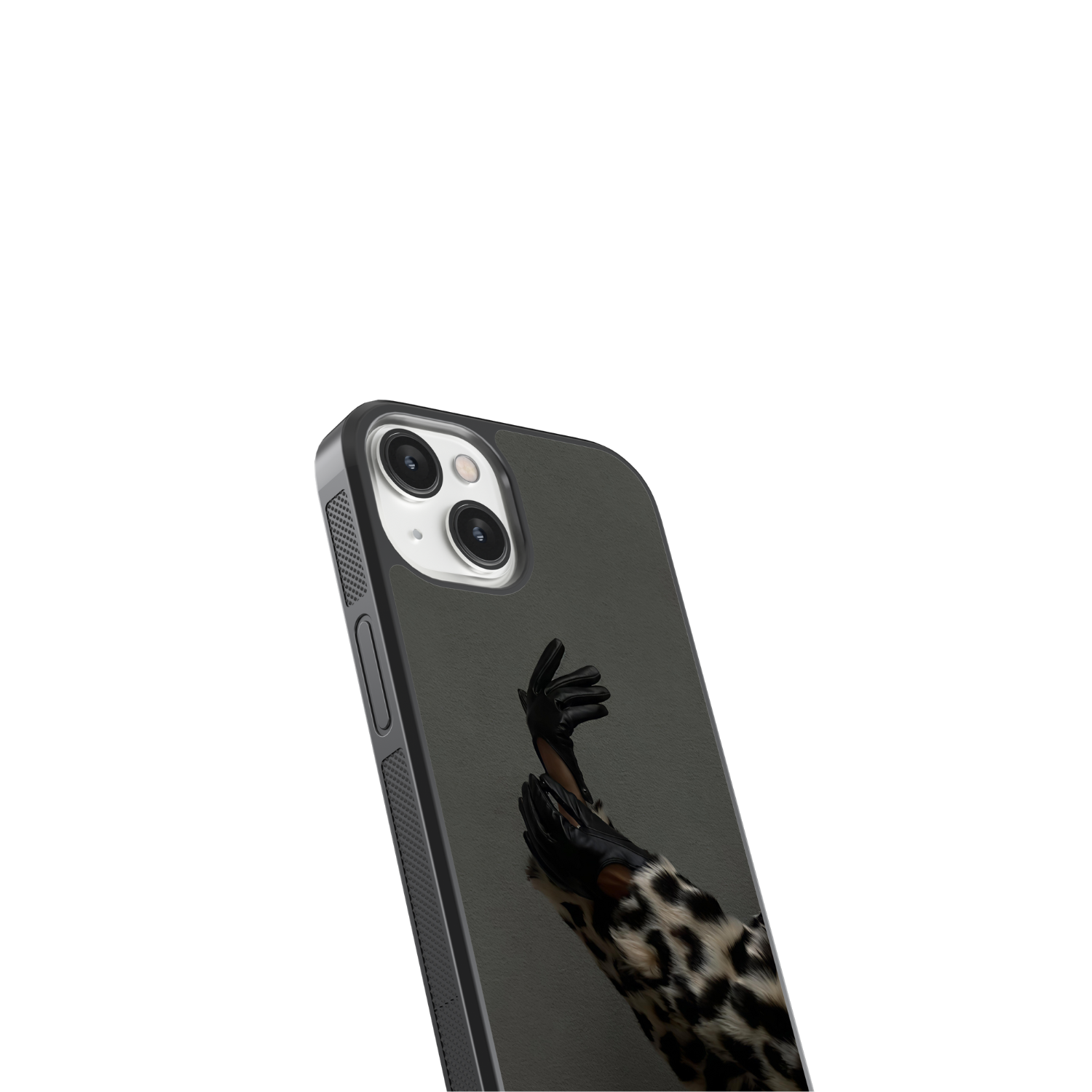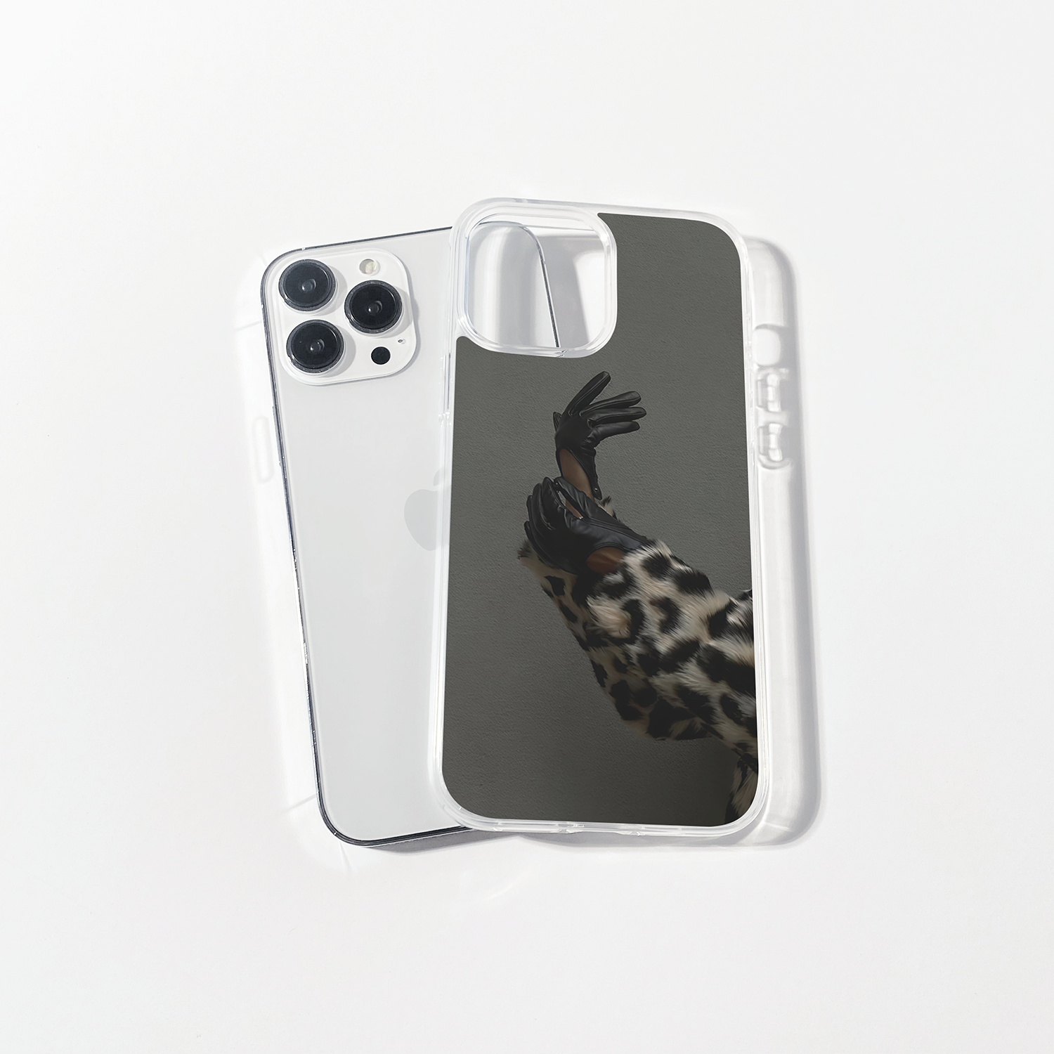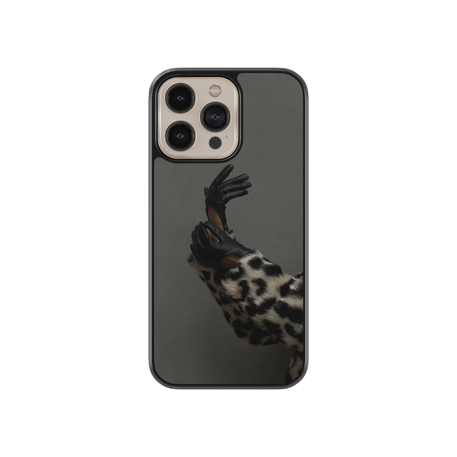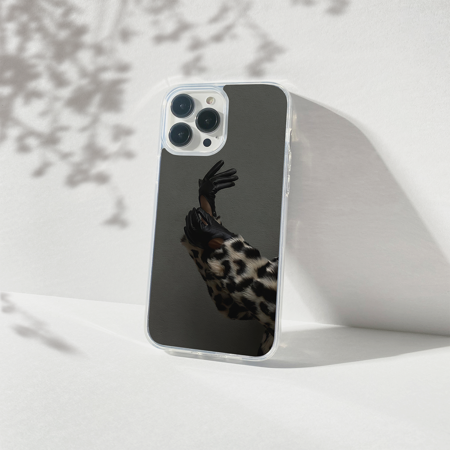 Enhance your phone with this edgy case showcasing a stylish black leather glove against a leopard print sleeve on a sleek gray backdrop. The bold, animal-inspired design with a touch of elegance is perfect for someone who loves daring, fashion-forward styles. Get yours now!